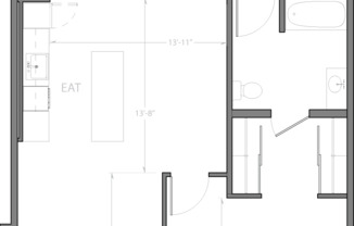 Studio, 1 bath, 601 sqft