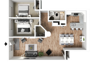 2 beds, 2 baths, 1,050 sqft