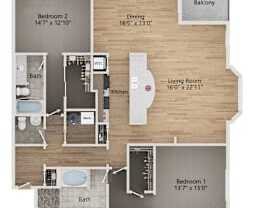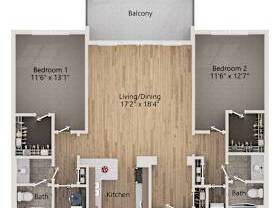 2 beds, 2 baths, 1,299 sqft