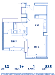 1 bed, 1 bath, 835 sqft