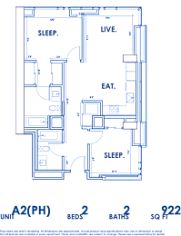 2 beds, 2 baths, 922 sqft