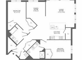 2 beds, 2 baths, 1,222 sqft