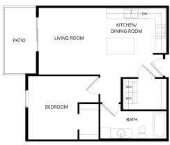 1 bed, 1 bath, 741 sqft