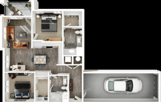 2 beds, 2 baths, 1,049 sqft