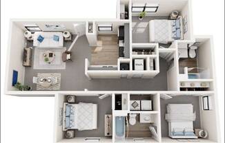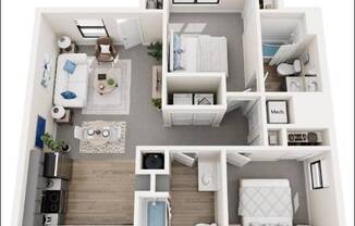 2 beds, 2 baths, 831 sqft