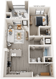 1 bed, 1 bath, 683 sqft