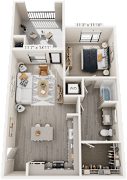 1 bed, 1 bath, 748 sqft