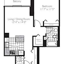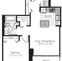 1 bed, 1 bath, 610 sqft