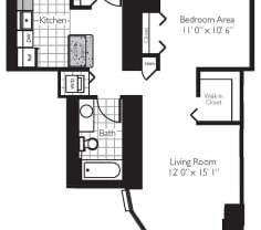 Studio, 1 bath, 565 sqft