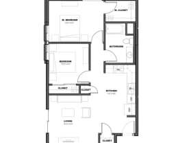 2 beds, 2 baths, 934 sqft
