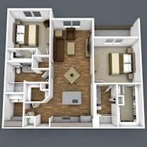 2 beds, 2 baths, 1,099 sqft