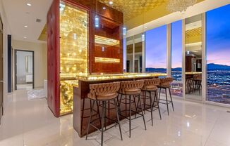Perched high above the iconic Las Vegas Strip, this fully furnished 2bd/ luxury residence offers an elevated living experience with breathtaking panoramic views of the city skyline and surrounding mountains. The thoughtfully designed floorplan features an open-concept living and dining area that flows seamlessly into a sleek, modern kitchen, ideal for both entertaining and everyday living. The spacious bedroom provides a private retreat with generous closet space and a spa-inspired bathroom, while expansive windows throughout the residence flood the home with natural light. Elegantly appointed with designer furnishings and refined finishes, the home delivers a turnkey lifestyle complemented by world-class amenities, attentive service, and a premier Strip location