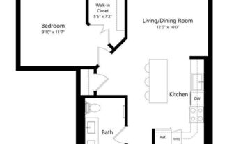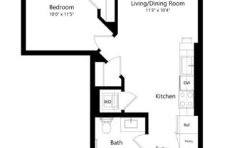 Studio, 1 bath, 556 sqft