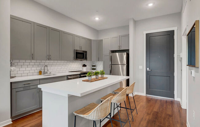 Waterford Bay Apartments offers a wide variety of micro units, studios, one-bedroom, and two-bedroom apartments for rent in Saint Paul, MN. Each thoughtfully designed floor plan features modern layouts and upscale finishes to support your lifestyle. Gourmet kitchens include quartz countertops, stainless-steel appliances, and islands in select apartment homes, creating an ideal space for cooking and entertaining. Large windows and sliding glass doors allow natural light to fill each residence, while private patios in most homes showcase stunning views of the Mississippi River and downtown St. Paul skyline