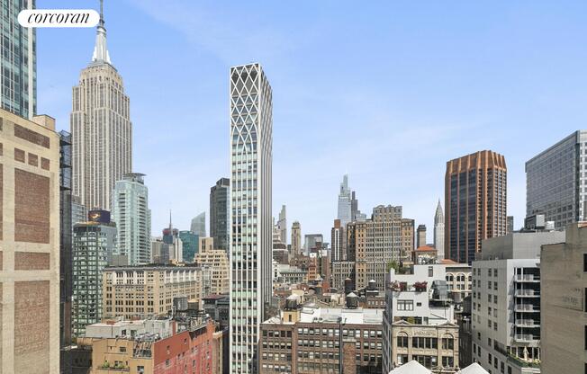 High-floor 2-bedroom, 2-bathroom residence at one of Midtown's most distinctive addresses. Floor-to-ceiling windows flood every room with natural light and frame sweeping views of the Manhattan skyline (North, South, and West) - including the Empire State Building. The open kitchen features dark walnut cabinetry, a chef's gas cooktop, Sub-Zero refrigerator, and a large waterfall island with seating. The sprawling living room opens to a private balcony. Both bedrooms are generously sized with ample closet space. Two spa-like bathrooms include a double-vanity primary bath with soaking tub and glass-enclosed rain shower. Hardwood floors throughout. In-unit washer/dryer. Central A/C. Building amenities include 24-hour doorman, concierge, fitness center, and rooftop deck. Application Processing Fee (Non-Refundable) $700 Credit Report Fee (non-refundable) $100 per applicant Move In Deposit (refundable if no damages) $500 Move In Fee (non refundable) $750 Move Out Deposit (refundable if no damages) $500 Move Out Fee (non refundable) $750