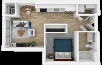 1 bed, 1 bath, 488 sqft