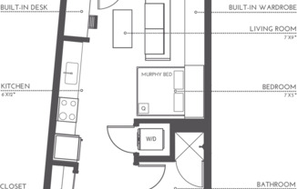 Studio, 1 bath, 505 sqft