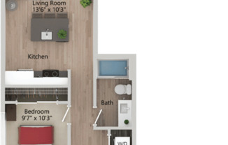Studio, 1 bath, 623 sqft