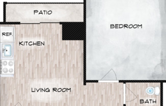 1 bed, 1 bath, 413 sqft
