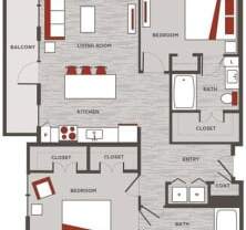 2 beds, 2 baths, 1,177 sqft