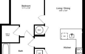 1 bed, 1 bath, 669 sqft