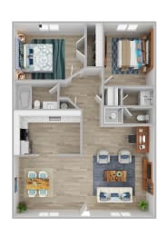 2 beds, 2 baths, 875 sqft
