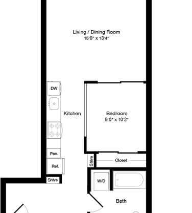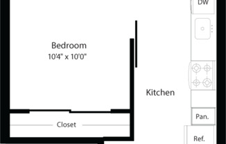 Studio, 1 bath, 521 sqft