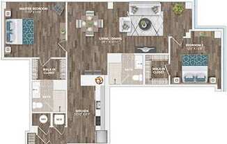 2 beds, 2 baths, 1,068 sqft