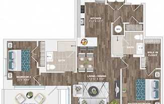 1 bed, 1 bath, 686 sqft