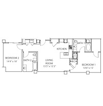 2 beds, 2 baths, 1,150 sqft