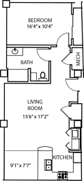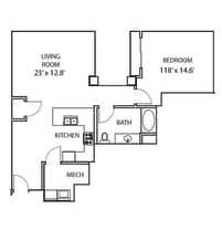 1 bed, 1 bath, 755 sqft