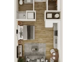 Studio, 1 bath, 539 sqft