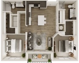 2 beds, 2 baths, 1,066 sqft