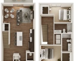 2 beds, 2.5 baths, 1,204 sqft