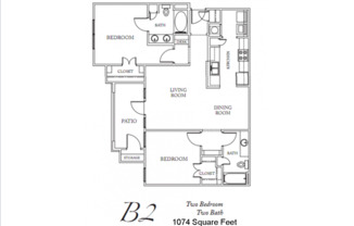 2 beds, 2 baths, 1,074 sqft