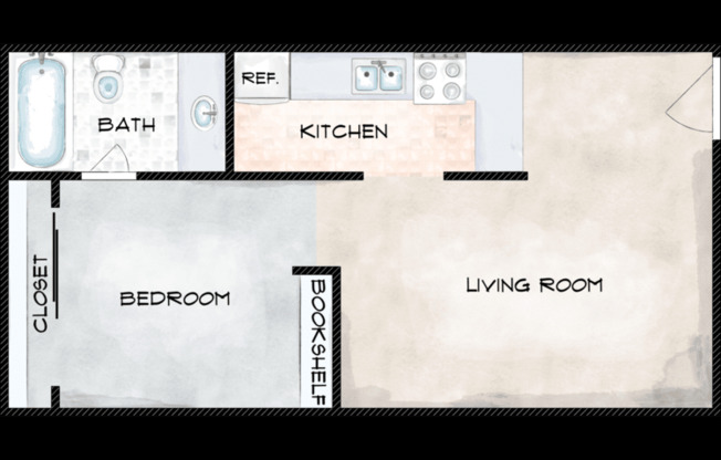 Studio, 1 bath, 400 sqft