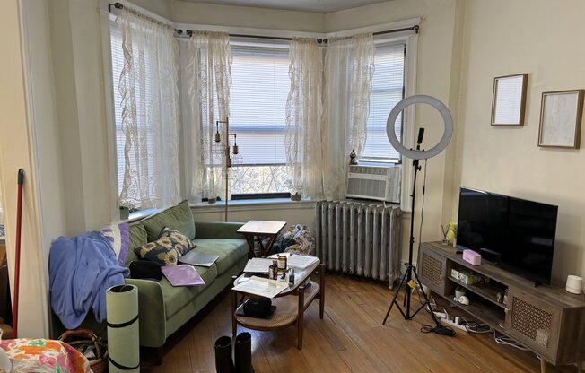 Studio, 1 bathroom, hardwood floors, high ceiling, laundry in building, elevator, DSL/Cable ready, heat and hot water included