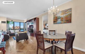 FULL SERVICE CONDO OPEN RIVER/CITY VIEWS AT THE PROMENADE!! FURNISHED OR UNFURNISHED RENTAL ! Great original condition TRUE one Bedroom 1.5 Bath with private balcony with two entrances, walls of windows to enjoy SOARING WATER VIEWS, the home is in livable condition or ready to make your own ! Other perks include: Herringbone hardwood floors, powder room, Dining area, Walk in closets , Marble bathroom ensuite with Shower and Jacuzzi Bath. Building Amenities Include: Doorman, Concierge, Garage, Live-in Super, Playroom, Common Roof Garden, Rooftop Jogging track, Conference Room, Storage, Valet, Bike Room, Party Room, Gym, Pool, Sauna and Steam! Situated in quiet cul-de-sac and in a vibrant neighborhood with a plethora of eateries, the Crosstown 79th Street bus, River Run and John Jay Park are all within reach! This is A MUST SEE!