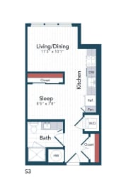Studio, 1 bath, 512 sqft