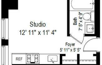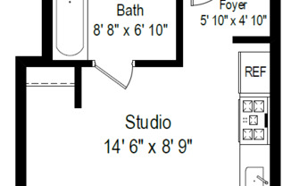Studio, 1 bath, 208 sqft