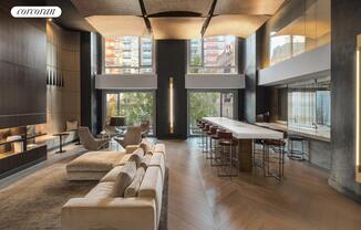 Originally developed as a luxury condominium, The Oskar now rises as Midtown West's most prestigious rental address, a quiet masterpiece where art, architecture, and modern comfort converge. The alcove studio residences offer thoughtfully proportioned layouts with in-unit laundry, and open kitchens that elevate daily living with effortless sophistication. Step into refined elegance in this stunning alcove studio that seamlessly blends modern design with comfort. The thoughtfully planned open layout maximizes both space and light, while high ceilings and oversized south-facing floor-to-ceiling windows bathe the home in exceptional natural sunlight. The custom European-inspired kitchen is a study in refined functionality, showcasing a full Bosch appliance suite, Caesarstone countertops, and thoughtfully designed cabinetry with integrated pull-out soft close drawers. The spa-quality bath evokes a calming sanctuary, complete with a glass-enclosed rainfall shower, neutral designer tilework, and elevated fixtures that infuse luxury into daily rituals. The residence also features a built-in washer and dryer, and three expansive closets outfitted with custom shelving and tailored storage solutions. Residents enjoy an enviable suite of amenities, beginning with a beautifully landscaped rooftop terrace framed by sweeping skyline and Hudson River views, complemented by a sculpted lawn by HMWhite. A tranquil second-floor garden patio, a state-of-the-art fitness studio equipped with Peloton and Technogym, and an elegant resident Living Room offering workspace, dining, and library settings that elevate the experience. The attended lobby, with its 24-hour concierge, provides a peaceful and polished welcome home. Perfectly positioned at the convergence of the dynamic Hudson Yards and the ever-evolving Hell's Kitchen, Oskar offers unparalleled access to some of Manhattan's most vibrant cultural, culinary, and waterfront destinations. Residents are moments from the Hudson River, Midtown West, West Chelsea's celebrated galleries, and the iconic High Line.