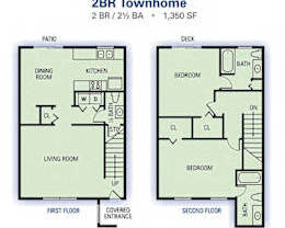 2 beds, 2.5 baths, 1,350 sqft