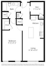 1 bed, 1 bath, 635 sqft