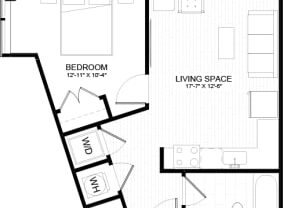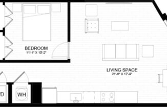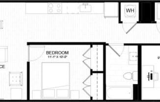 Studio, 1 bath, 592 sqft