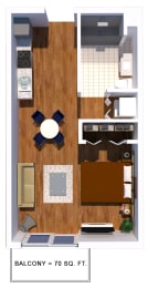 Studio, 1 bath, 422 sqft
