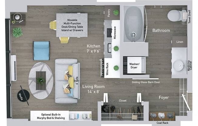 Studio, 1 bath, 365 sqft