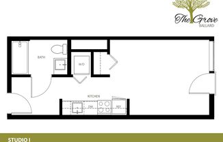 Studio, 1 bath, 430 sqft