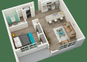 1 bed, 1 bath, 720sqft