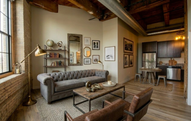 Located on the waterfront, the Docks Building offers views of downtown and the Menomonee River. The historic building features Cream City brick walls, exposed heavy timber construction, and wood plank ceilings. Each kitchen is equipped with granite countertops and modern finishes. Amenities within the building include a weight-room, wine cellar, cigar lounge, and a glass-walled lobby with a grand piano! Choose from our spacious studios, one-bedroom or two-bedroom units!