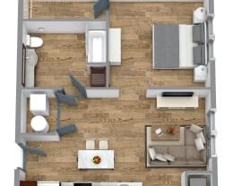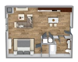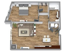 Studio, 1 bath, 740 sqft